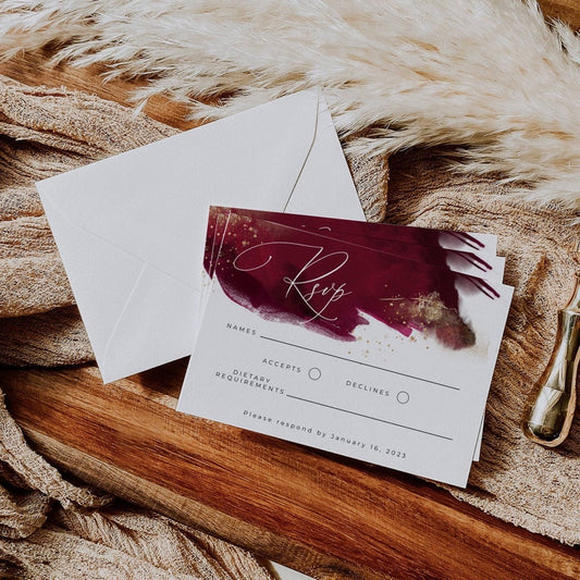 Wedding Invitation Template, Printable Maroon & Gold Wedding Suite,