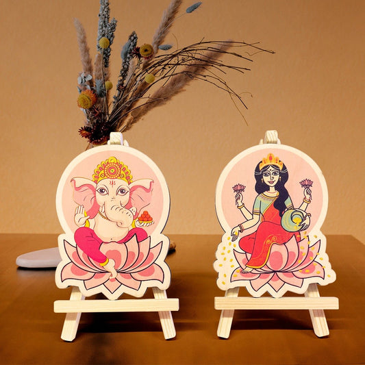 Wooden Ganesh Laxmi idols with stand