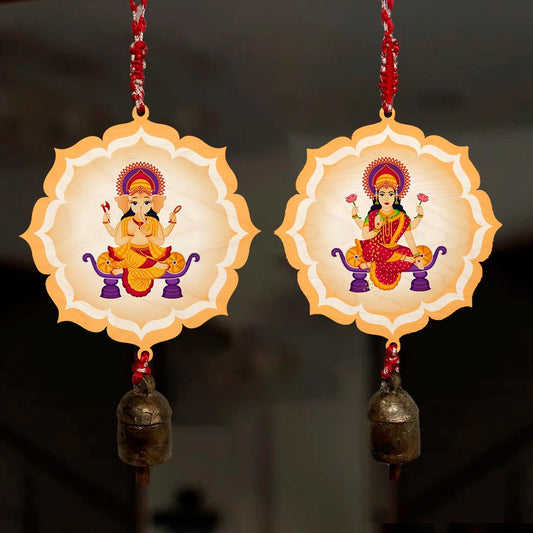 Wooden Ganesh Laxmi Hanging Bells