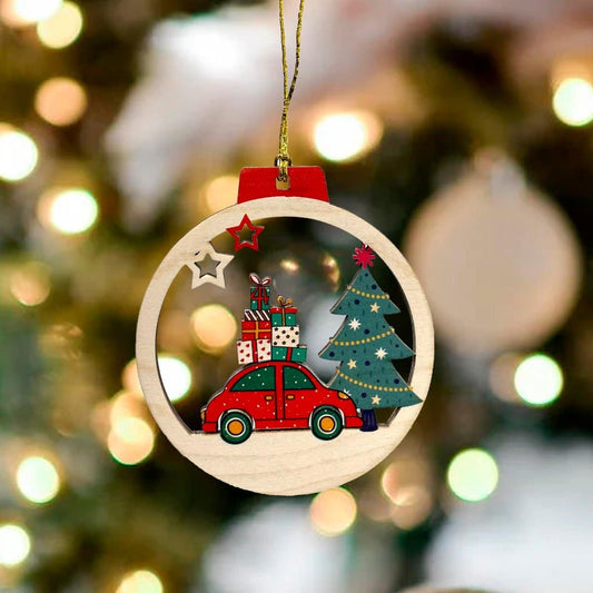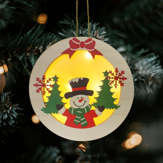 Wooden Christmas Hanging Ornament with Lights